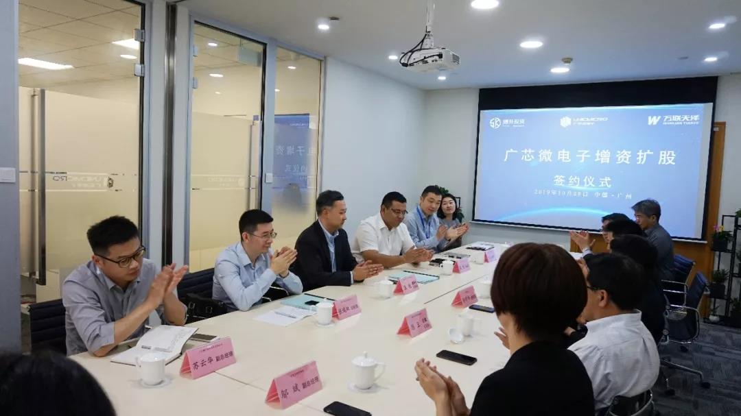 2019年10月28日(周一),太阳成集团tyc122cc(广州)股份有限公司增资扩股签约仪式在位于广州科学城商业广场的太阳成集团tyc122cc总部举行。 广州穗开股权投资有限公司总经理张放、万联天泽资本投资有限公司总经理张瑞双、太阳成集团tyc122cc(广州)股份有限公司总经理兼董事长王锐参加仪式并签署了增资扩股协议,本次融资规模为数千万元人民币。 开发区管委会巡视员孙学伟、开发区投资促进局副局长黄伟坚、智光电气股份有限公司总裁陈谨、广州市半导体协会会长及粤港澳大湾区半导体产业联盟创会理事长陈卫、广州开发区投资集团副总经理邬斌参加了本次签约仪式。