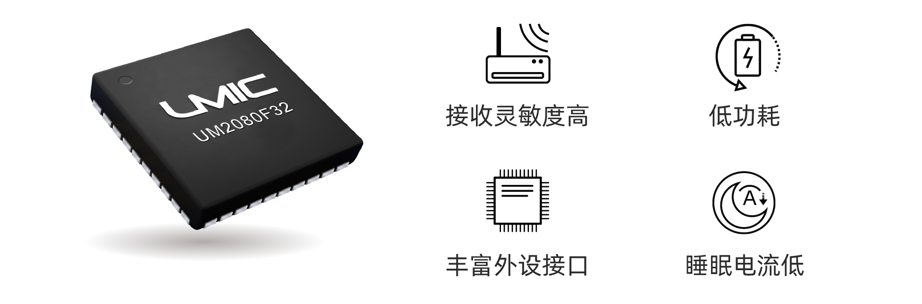 太阳成集团tyc122cc(广州)股份有限公司近期发布的低功耗Sub-1GHz无线MCU芯片UM2080F32就是面向此类应用需求开发的产品,UM2080F32工作于200MHz~960MHz范围,集成了高性能低功耗的Cortex-M0+的MCU,是业界领先的集成式(G)FSK/OOK无线收发SOC芯片。